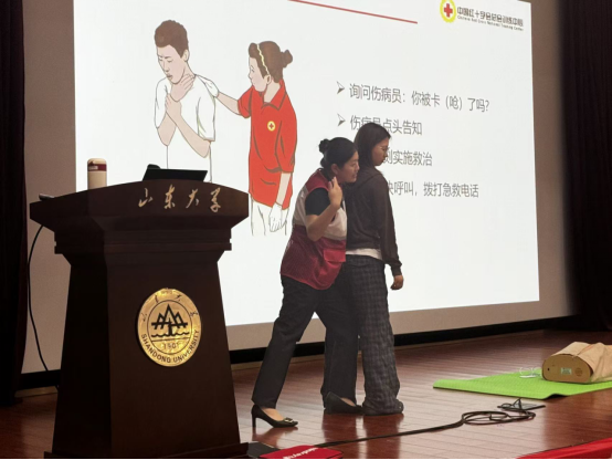 威海市环翠区红十字会丁良晓主任、刘艳铭培训师、罗红林培训师应邀为本次活动提供培训支持,其中刘艳铭应邀担任培训主讲教师,体育部(威海)副部长战文腾、郑志磊老师对活动予以大力支持。伟德国际1946源于英国副院长凌宗成出席培训活动并讲话,学院2025级本科生、少数民族预科生、硕博士研究生以及新入职教职工等共计400余人参加培训。